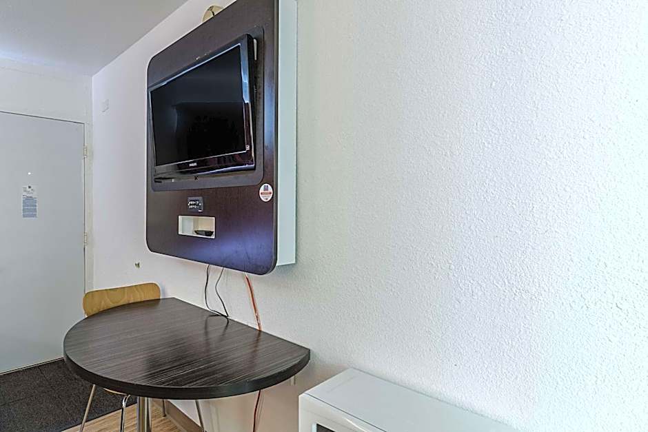A microwave and fridge are included in this room, along with a flat-screen cable TV with Showtime.